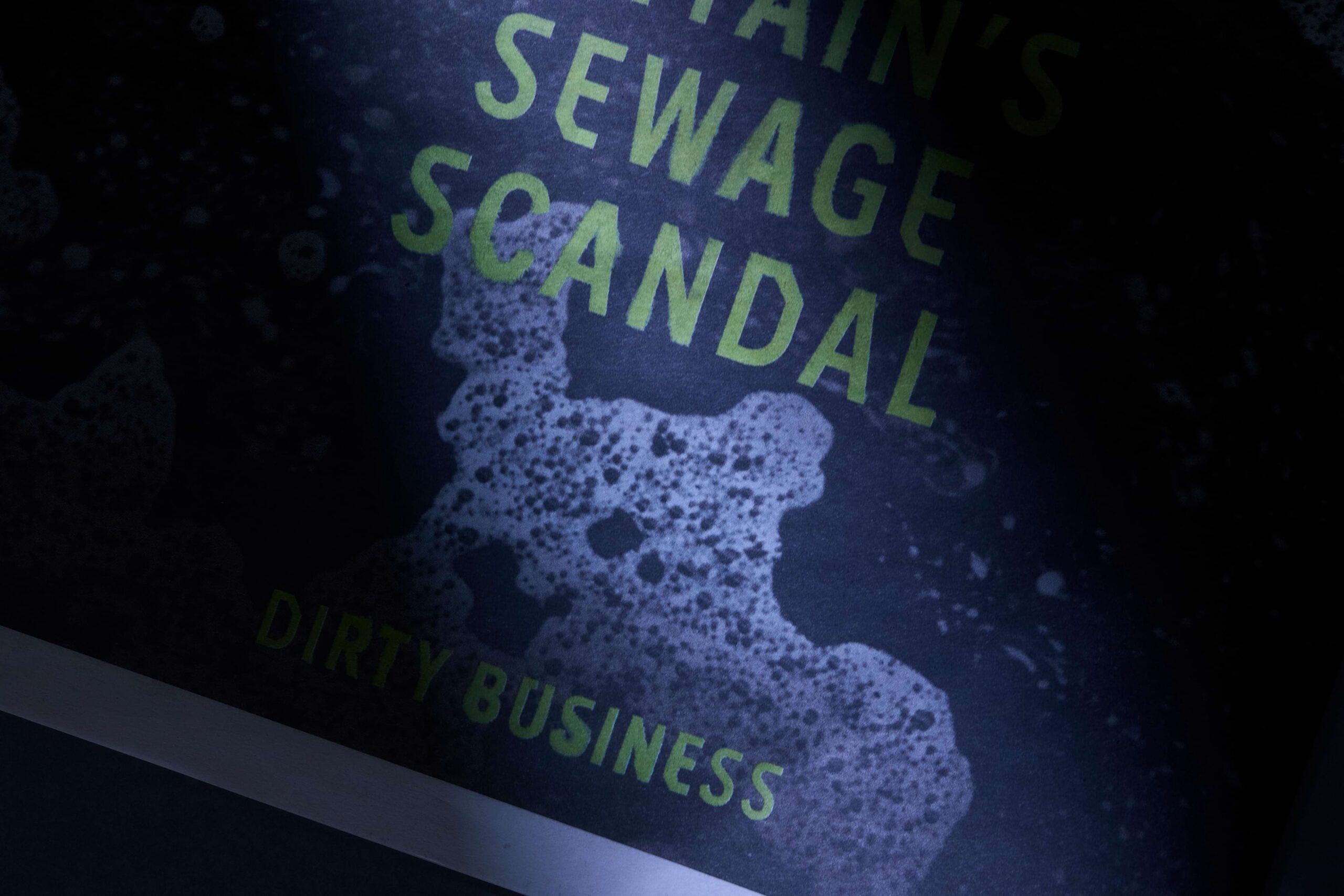 Meanwhile, over at Curious HQ, we mucked-in alongside 4Creative designer, Aimi Awang, to produce a series of OOH assets for use across digivans, Transvision and regional press cover wraps. Dirty, polluted macro water shots are overlayed with text that bleeds and distorts in response to the surrounding pollution. Each asset is designed to get up close and personal, with strategic placement and clever copy that directly challenges the water companies who play a role in the fact-based drama.